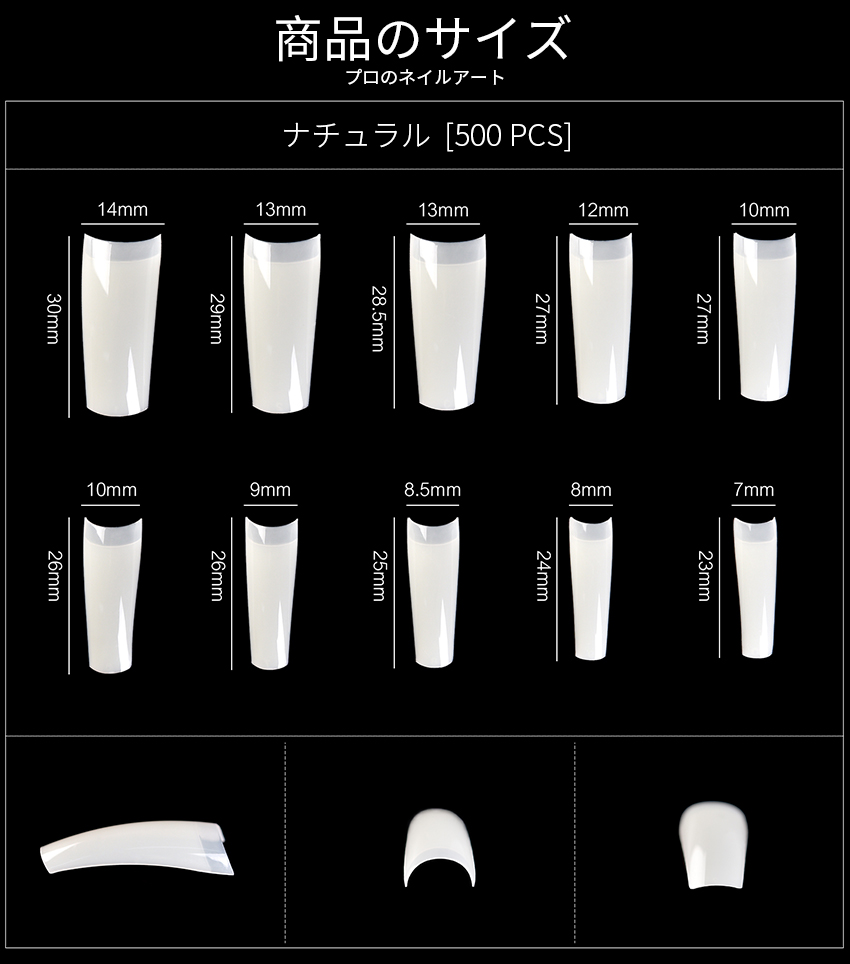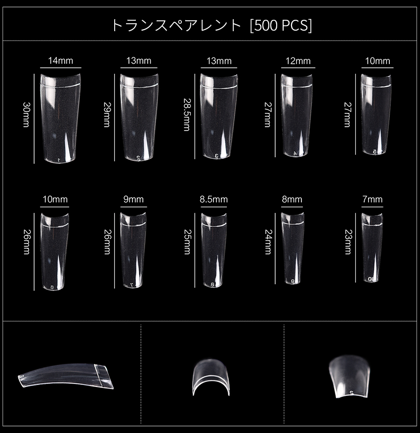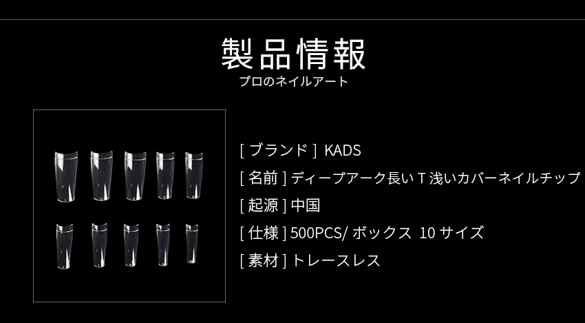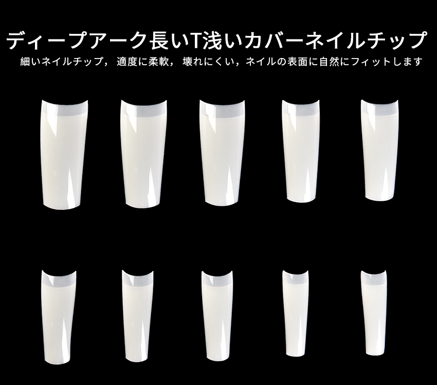 ディープアーク長いT浅いカバーネイル チップ 500018