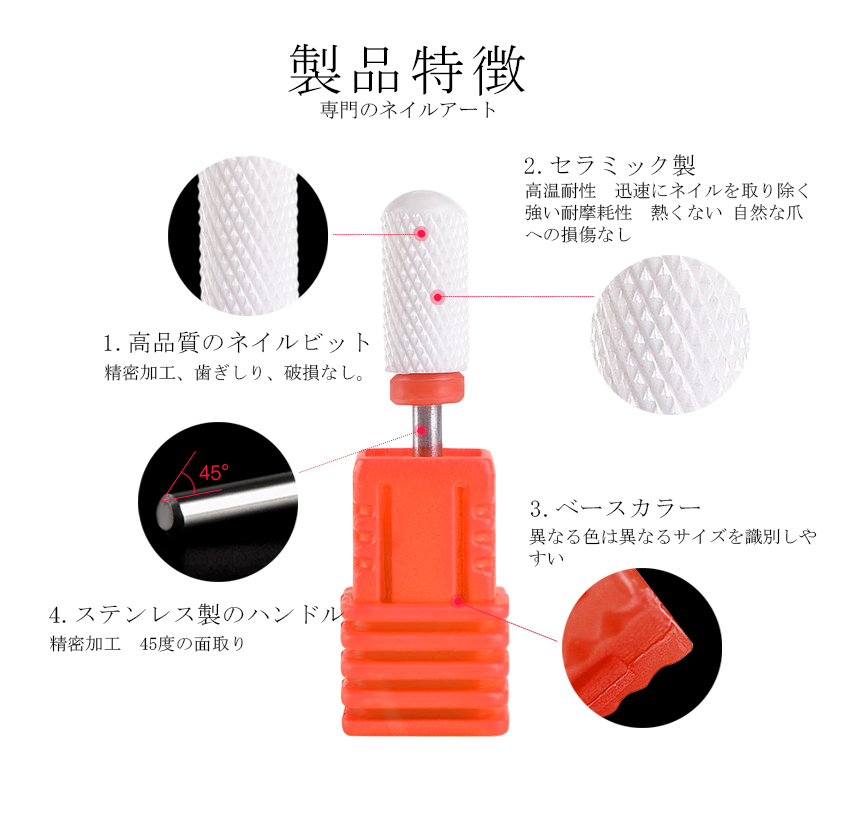 バレル ボール トップ セラミック ネイル ドリル ビット 300101