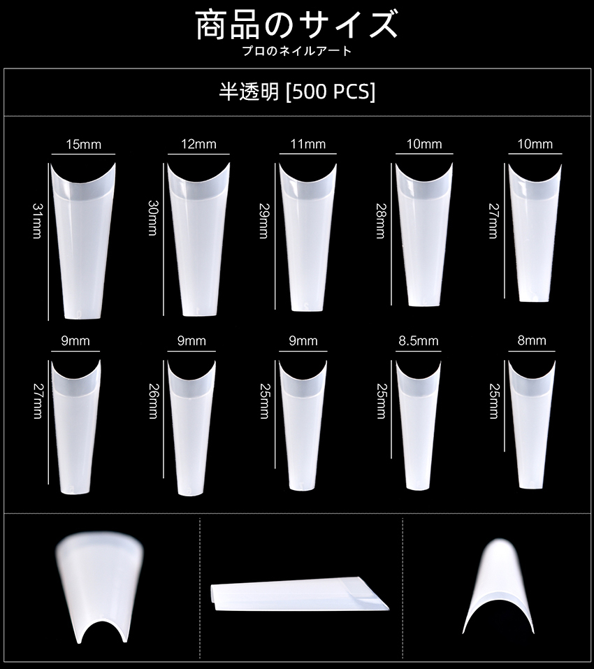Cアークトレースレス浅いカバーネイルチップ 500024