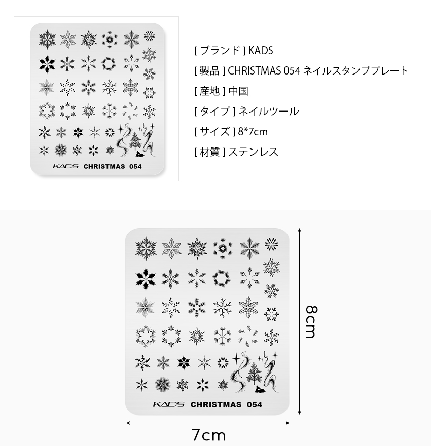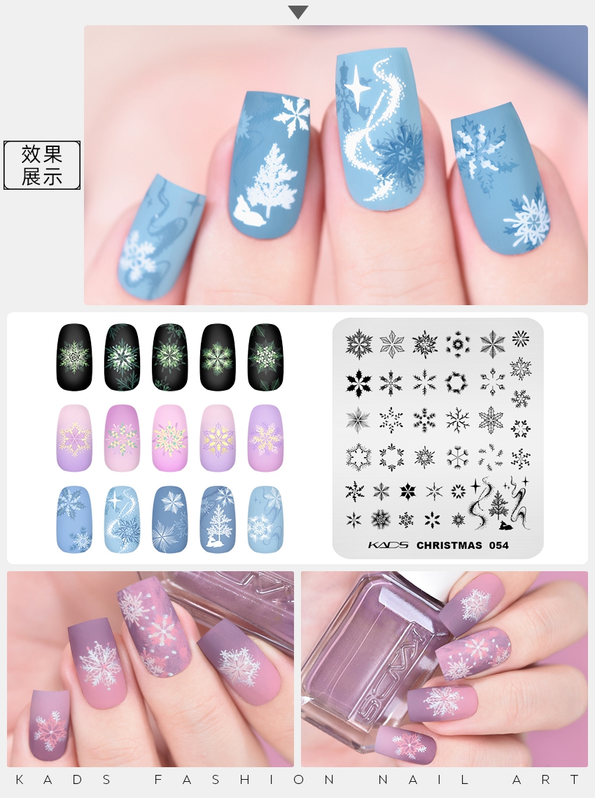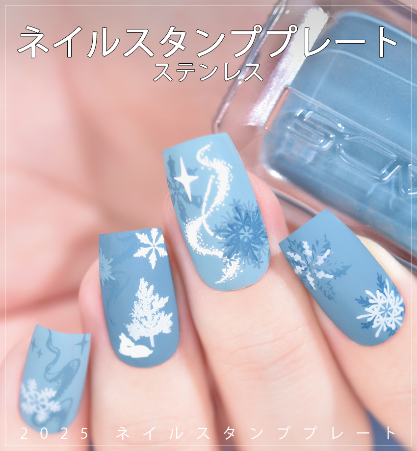 Christmas 054 Nail Stamping Plate 重ね塗りの雪の結晶と松の枝と輝き