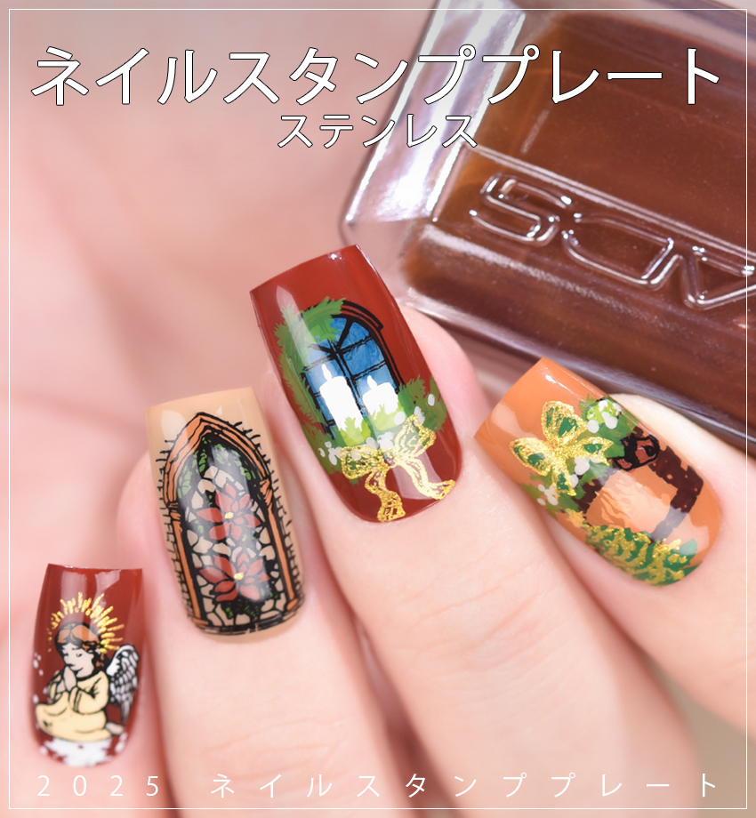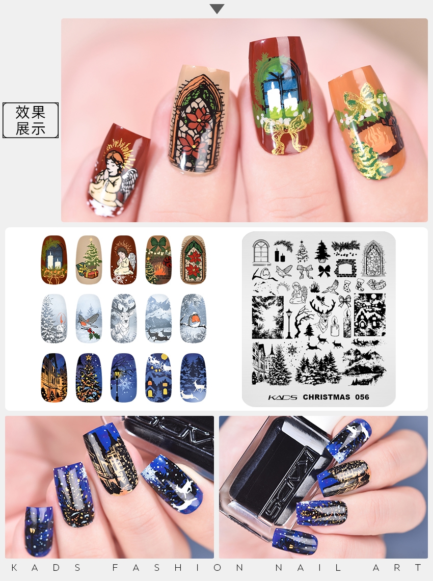 Christmas 056 Nail Stamping Plate クリスマスビレッジ&トナカイ&雪の木々&冬の風景&礼拝堂&キャンドル&ステンドグラスの窓