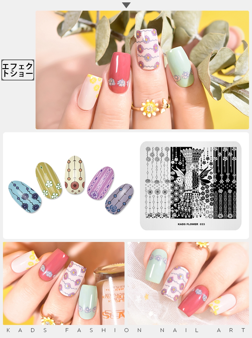 FLOWER 033 ネイルスタンププレート 翼と花
