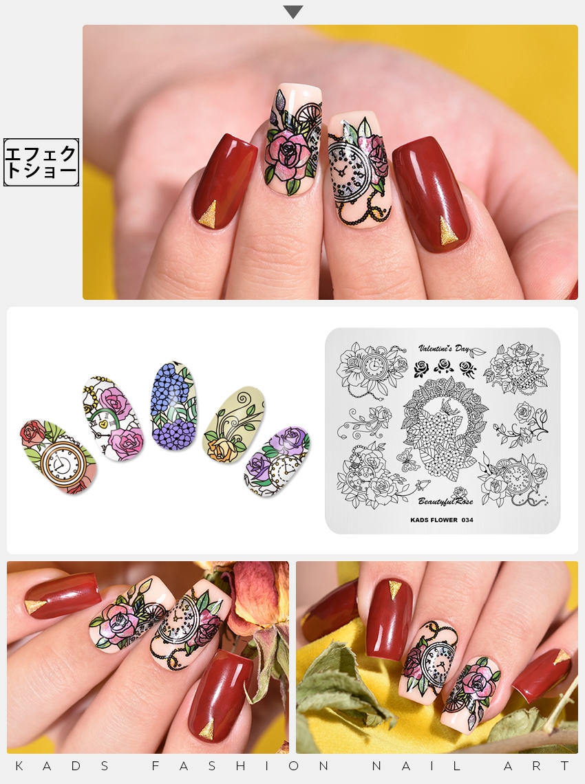 FLOWER 034 ネイルスタンププレート バラの花と時計