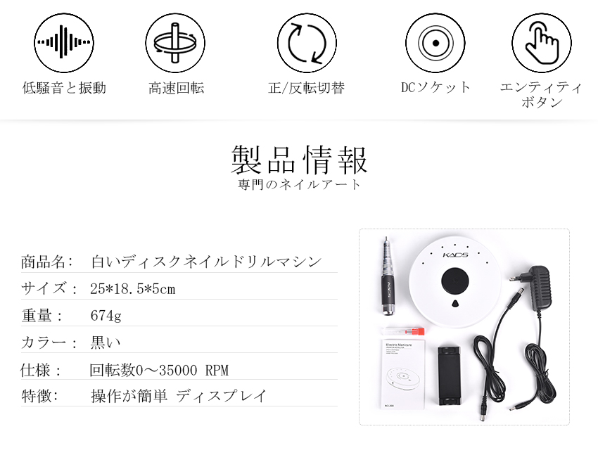 白いディスク形状のネイルドリルマシン 300112