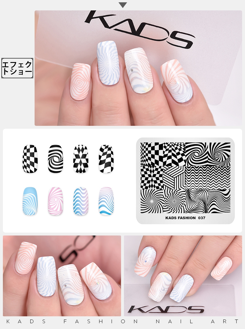 FASHION 037 ネイルスタンププレート ジオメトリ 波線 チェック