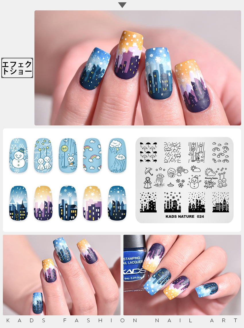 NATURE 024 ネイルスタンププレート 傘 虹 船