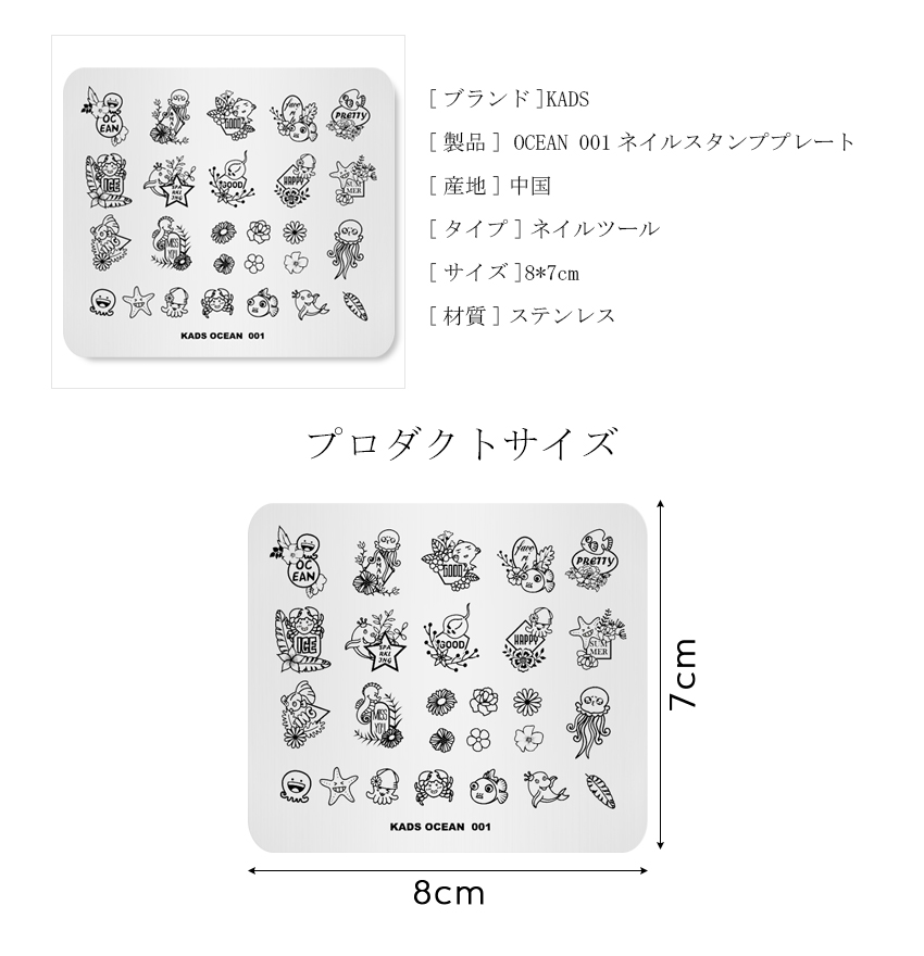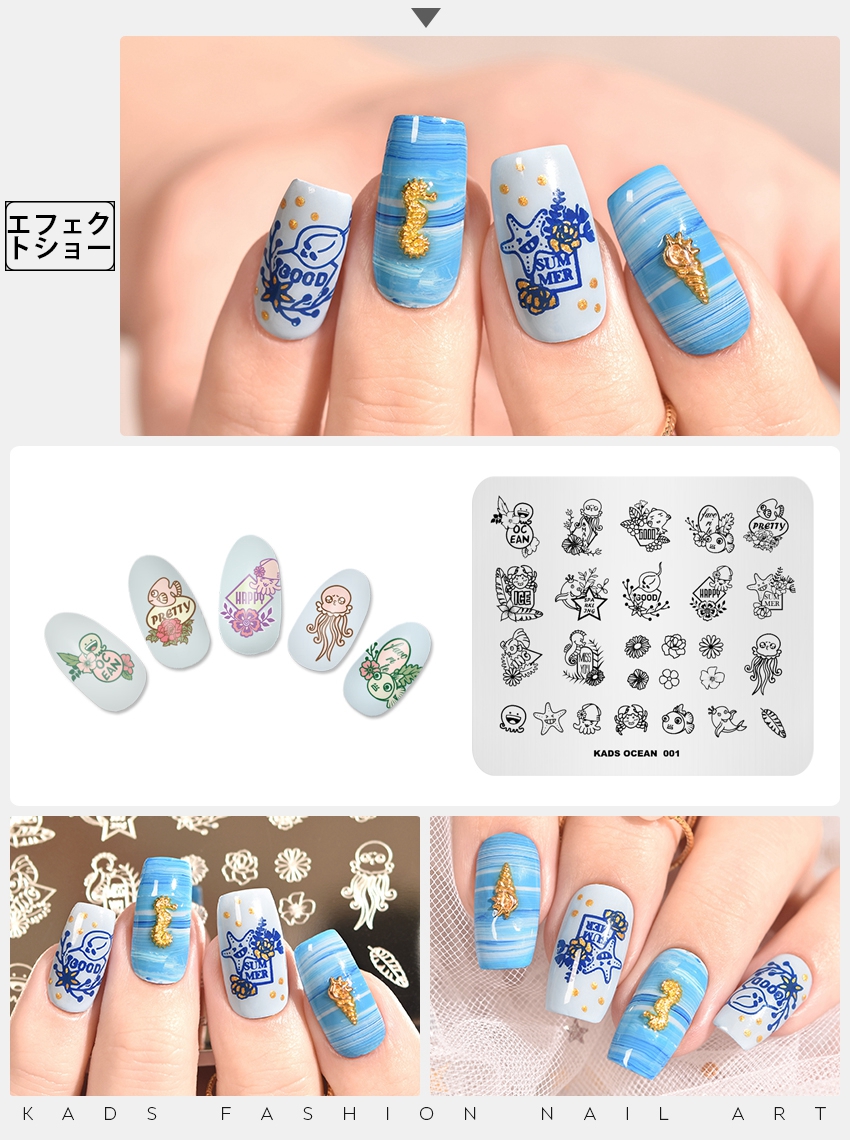 OCEAN 001 ネイルスタンププレート 海 タコ 海星 蟹