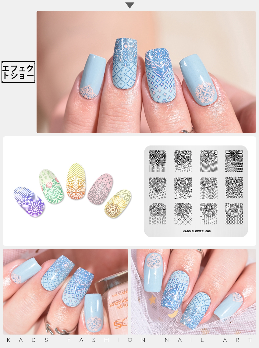 FLOWER 008 ネイルスタンピングプレート 満開の花とライン