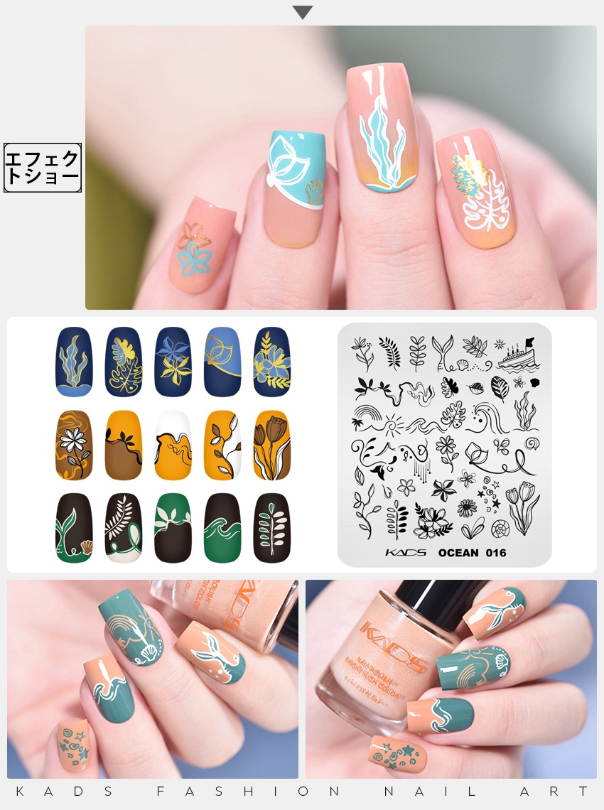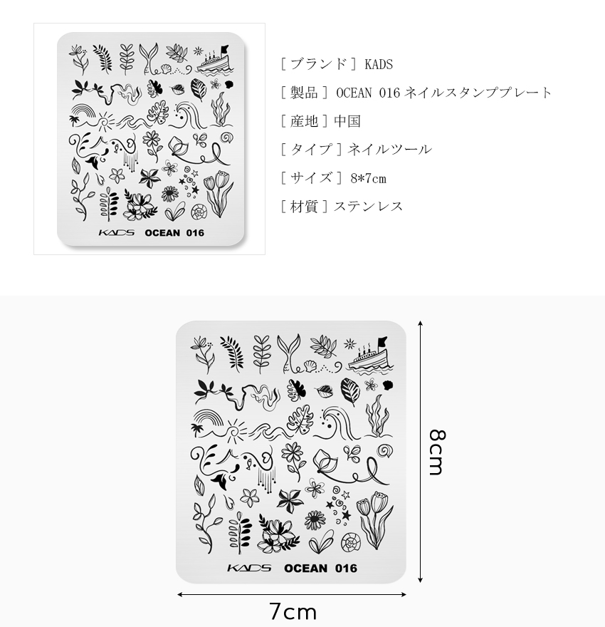 OCEAN 016 ネイル スタンピング プレート海藻&プルメリア&熱帯の葉&船&シェル&カタツムリ