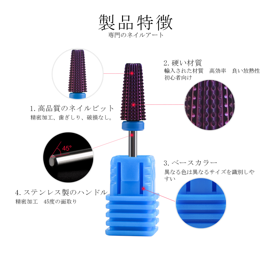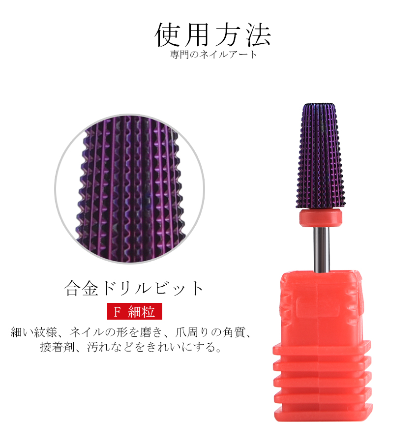 カット付きテーパーカーバイドネイルドリルビット 赤紫 300097