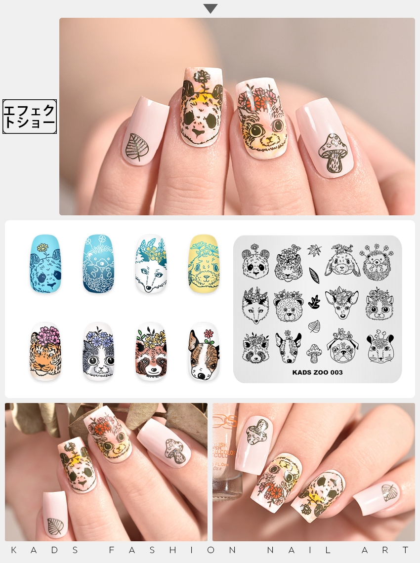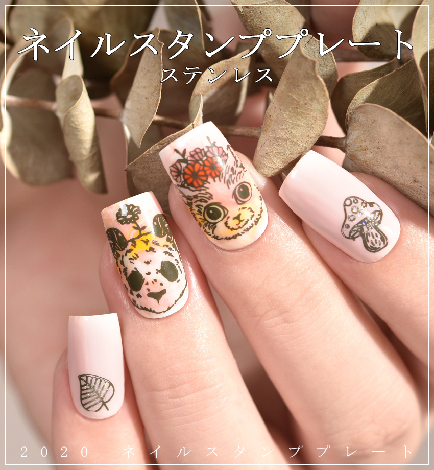 ZOO 024 ネイル スタンピング プレート 動物&猫の足&カエル&雲&月
